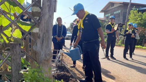 กิจกรรมประกอบด้วย การปรับปรุงภูมิทัศน์ บริเวณศูนย์การเรียนรู้ผ้าย้อมคราม การปลูกผักสวนครัวเพื่อสร้างความมั่นคงทางอาหาร ในพื้นที่หมู่บ้านดอนกอยให้เป็นพื้นที่ต้นแบบ “ทำให้เห็น ทำเป็นตัวอย่าง” ซึ่งการจัดกิจกรรมในครั้งนี้ เป็นการแสดงออกถึงความจงรักภักดี และ ร่วมกันบูรณาการการทำงาน น้อมนำแนวพระราชดำริใน สมเด็จพระกนิษฐาธิราชเจ้า กรมสมเด็จพระเทพรัตนราชสุดาฯ สยามบรมราชกุมารี “บ้านนี้มีรัก ปลูกผักกินเอง” และ “ทางนี้มีผล ผู้คนรักกัน” มาต่อยอด ปลูกผักสวนครัว เลี้ยงสัตว์ สร้างความมั่นคงทางอาหาร ตลอดจนน้อมนำแนวพระดำริใน สมเด็จพระเจ้าลูกเธอ เจ้าฟ้าสิริวัณณวรี นารีรัตนราชกัญญา มาประยุกต์ใช้ในชีวิตประจำวัน ผลักดันขับเคลื่อนให้เกิดหมู่บ้านยั่งยืน ให้มีความมั่นคงทางด้านอาหาร ด้านที่อยู่อาศัย มีความปลอดภัยในชีวิตและทรัพย์สิน ถ่ายทอดวัฒนธรรมประเพณีอันดีงามสู่สมาชิกชุมชนที่เป็นทายาทและเยาวชนคนรุ่นใหม่ และที่สำคัญคือ กล้าที่จะยืนหยัดต่อสถาบันหลัก ซึ่งได้แก่ ชาติ ศาสนา และพระมหากษัตริย์