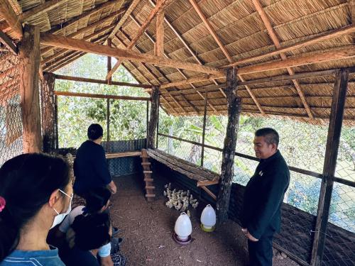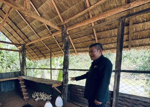 นายองอาจ ซองทุมมินทร์ พัฒนาการจังหวัดสกลนคร ลงพื้นที่ส่งเสริมกิจกรรมการดำเนินชีวิตตามแนวทางของปรัชญาเศรษฐกิจพอเพียง ด้วยการสนับสนุนไก่พันธุ์ “เหลืองดงยอ ไก่พันธุ์สามสายเลือด” เพื่อมุ่งเน้นการลดรายจ่าย เพิ่มรายได้ การพึ่งพาตนเองอย่างยั่งยืน เสริมสร้างความมั่นคงด้านอาหาร และสร้างรายได้ให้กับชุมชน ณ ศูนย์เรียนรู้ผ้าย้อมครามบ้านดอนกอย "วิชชาลัยดอนกอย วิถีแห่งการพัฒนาที่ยั่งยืน" อำเภอพรรณานิคม จังหวัดสกลนคร หมู่ที่ 2 บ้านดอนกอย อำเภอพรรณานิคม จังหวัดสกลนคร พร้อมให้คำแนะนำในการเลี้ยงไก่พันธุ์ “เหลืองดงยอ“ และการอนุบาลไก่ รวมถึงการจัดการโรงเรือนให้ถูกสุขลักษณะ พร้อมทั้งเยี่ยมเยียนให้กำลังใจแก่สมาชิกกลุ่มทอผ้าย้อมครามบ้านดอนกอย